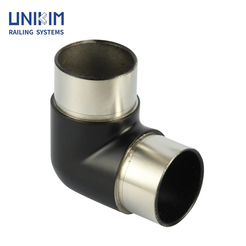 The UNIKIM Matte Black Stainless Steel Handrail Stair Pipe Connector Tube Elbow is the perfect blend of modern sophistication and structural reliability. Specifically designed for seamless integration within a Post Handrail System, this connector allows for precise directional changes in your railing layout. Crafted from premium-grade stainless steel with a high-durability Matte Black Design finish, it resists scratches and fingerprints while providing a bold, contemporary look. Whether you are navigating complex stairwells or creating custom balcony perimeters, this tube elbow ensures a flush, secure fit that maintains the continuous flow of your architectural handrail.