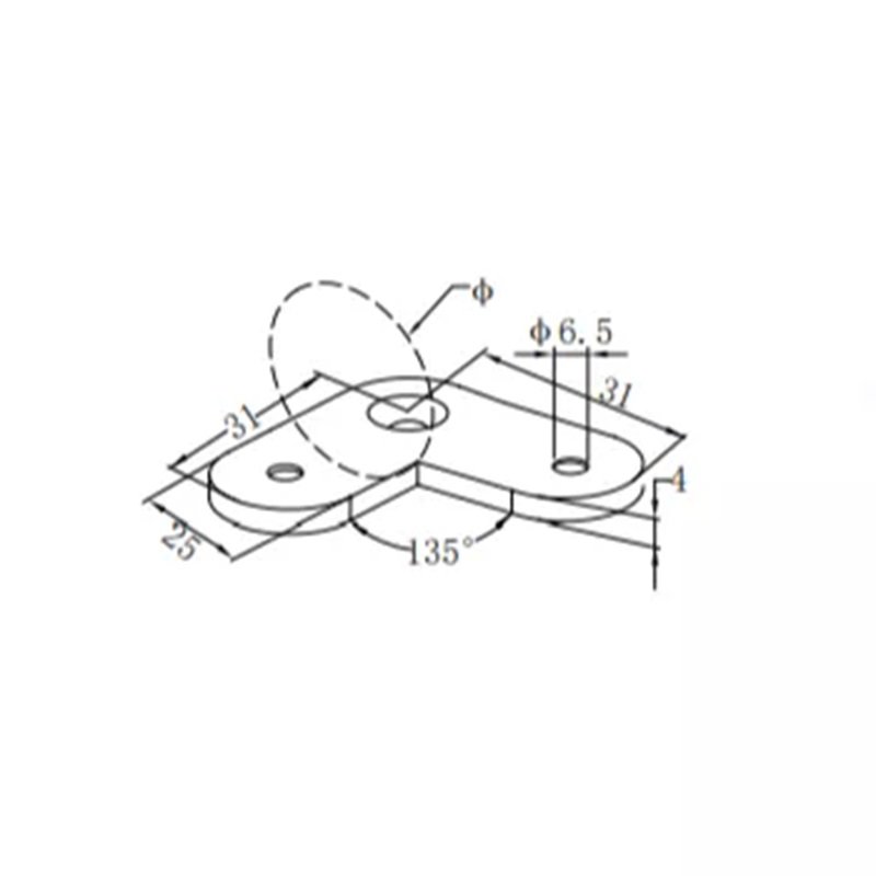 The 135-degree angle offers optimal support and stability for glass panels, especially in corner installations. This design ensures a seamless connection between glass panels, enhancing both safety and aesthetics in railing systems.